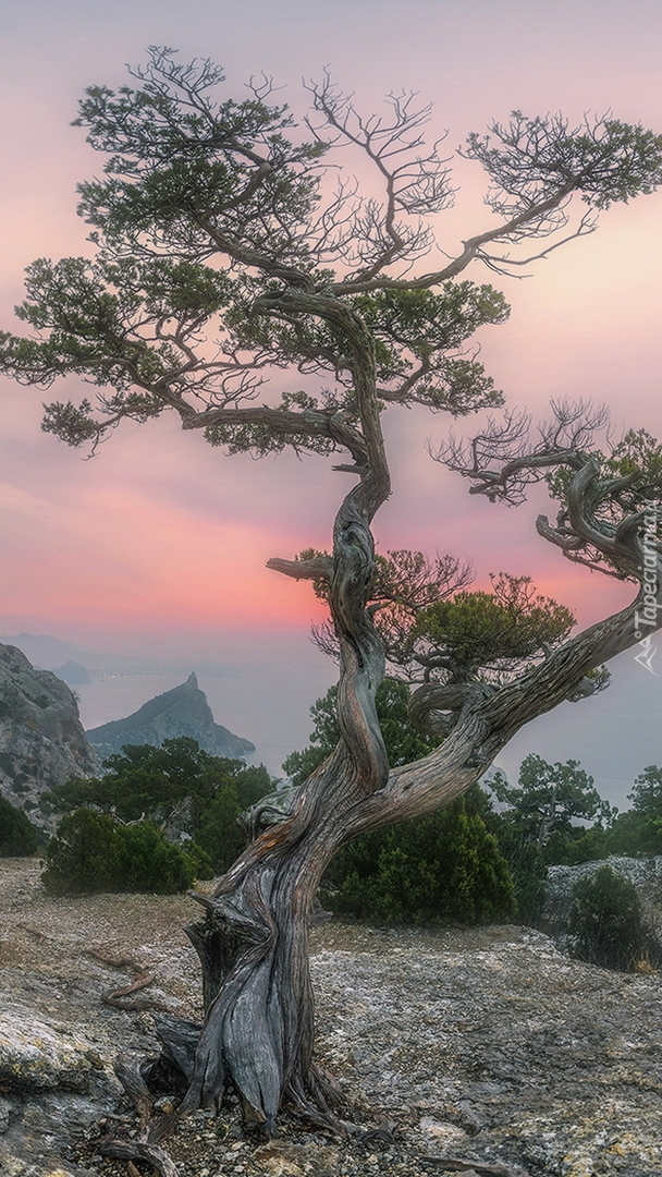 Edytor tapety: Sosna na skałach
