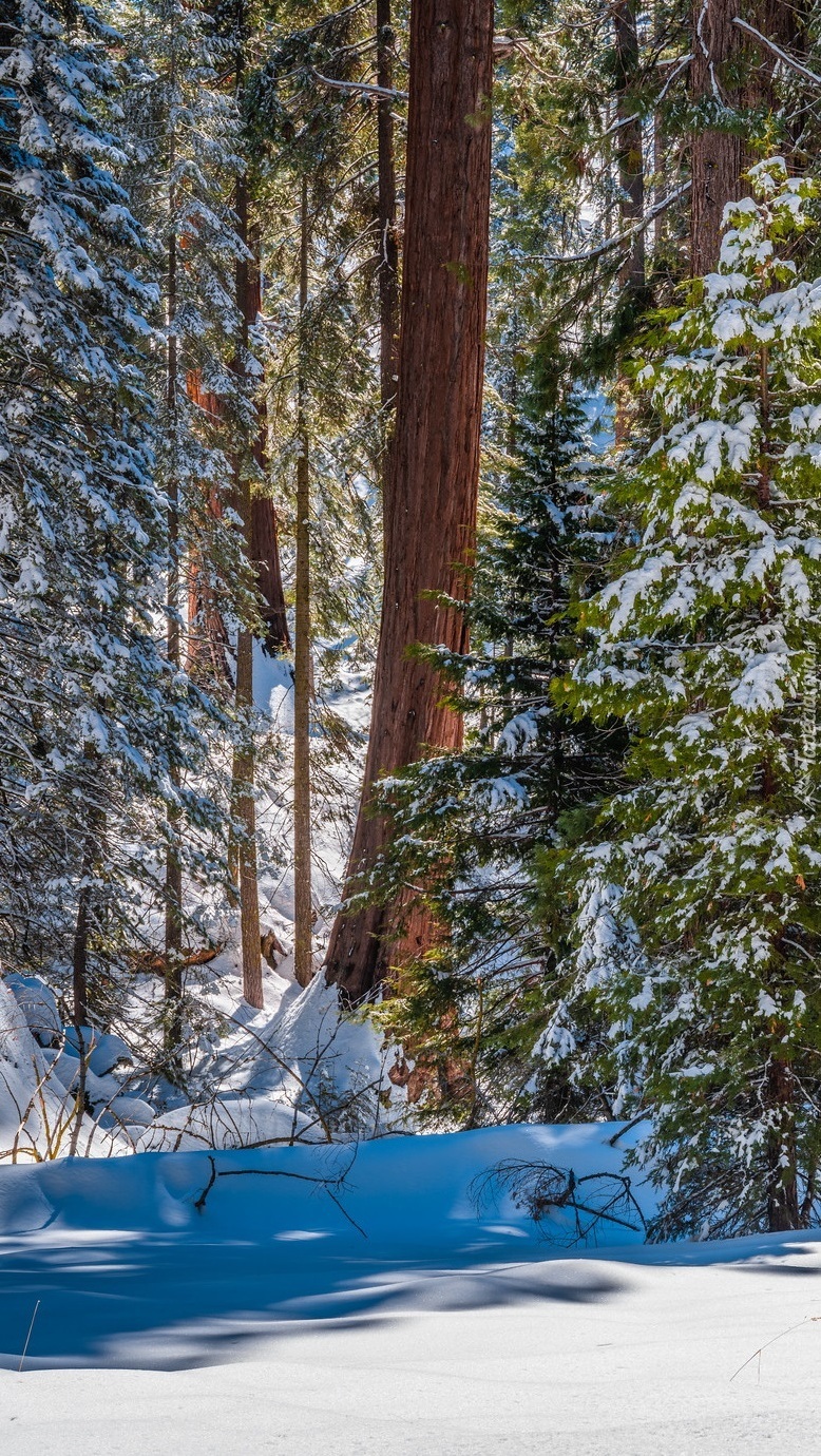 Edytor tapety: Ośnieżone drzewa w lesie