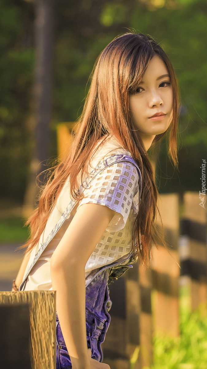 Edytor tapety: Długowłosa azjatka przy płocie