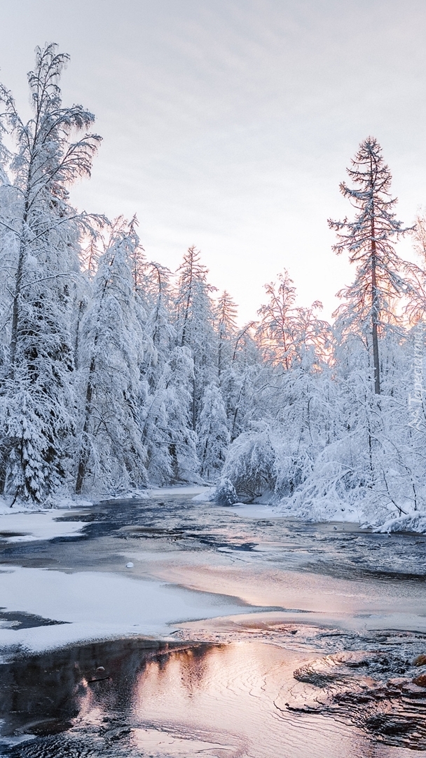 Edytor tapety: Ośnieżone drzewa nad rzeką