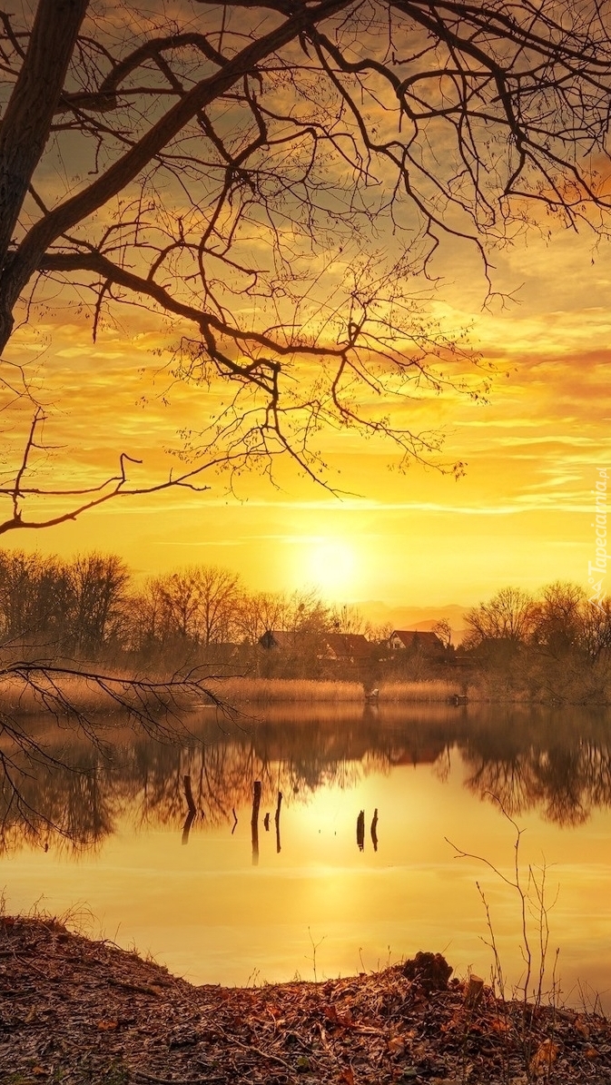 Edytor tapety: Zachód słońca nad jeziorem