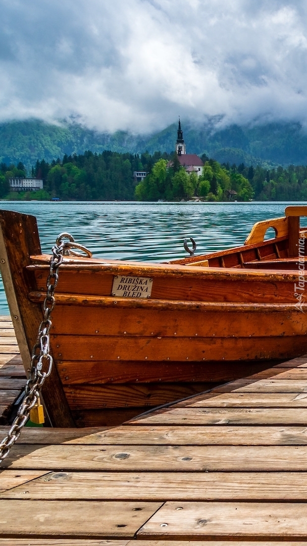 Edytor tapety: Łódka przy pomoście na jeziorze Bled