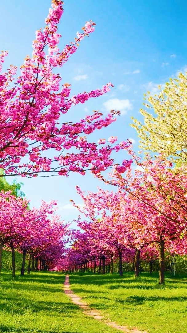 Edytor tapety: Kwitnące drzewa wzdłuż ścieżki