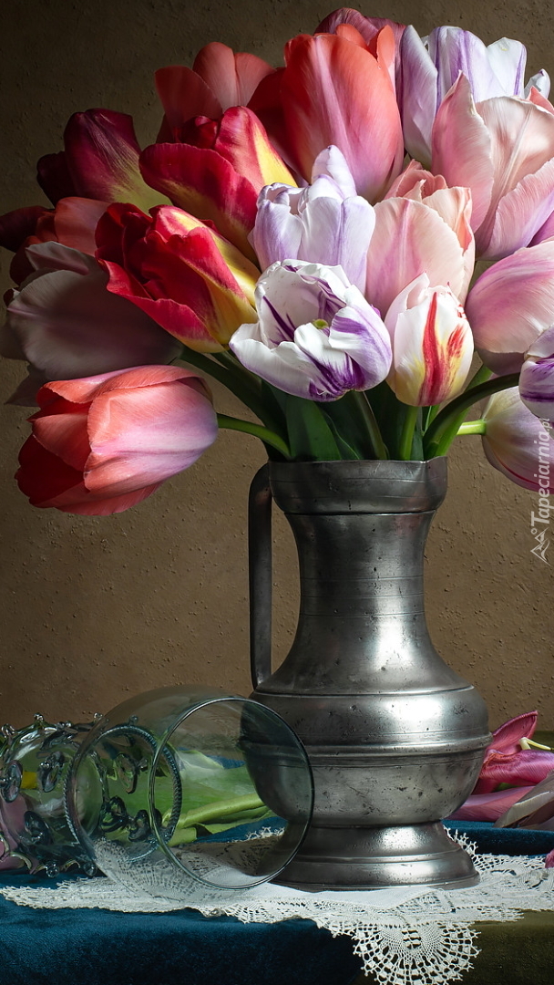 Edytor tapety: Kolorowe tulipany w dzbanku