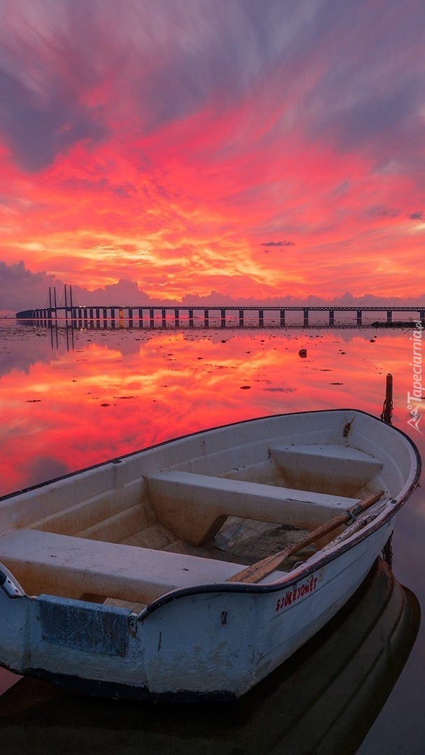 Edytor tapety: Łódka pod zaróżowionym niebem