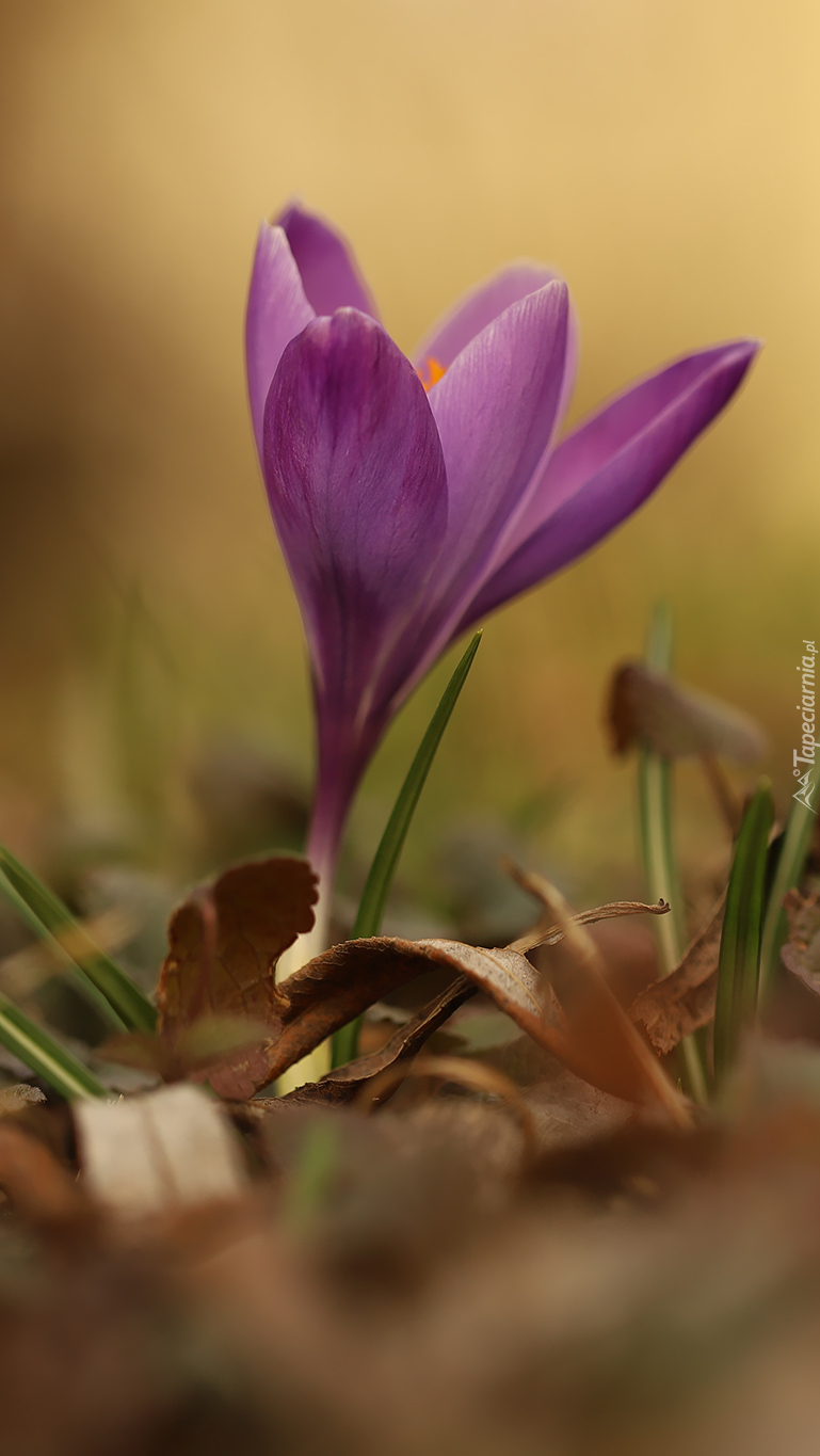 Edytor tapety: Fioletowy krokus w suchych liściach