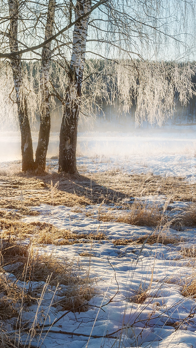 Edytor tapety: Oszronione brzozy w słońcu