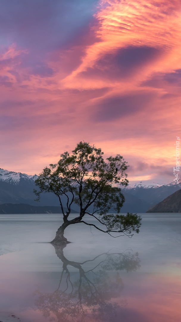 Edytor tapety: Drzewo na jeziorze Wanaka