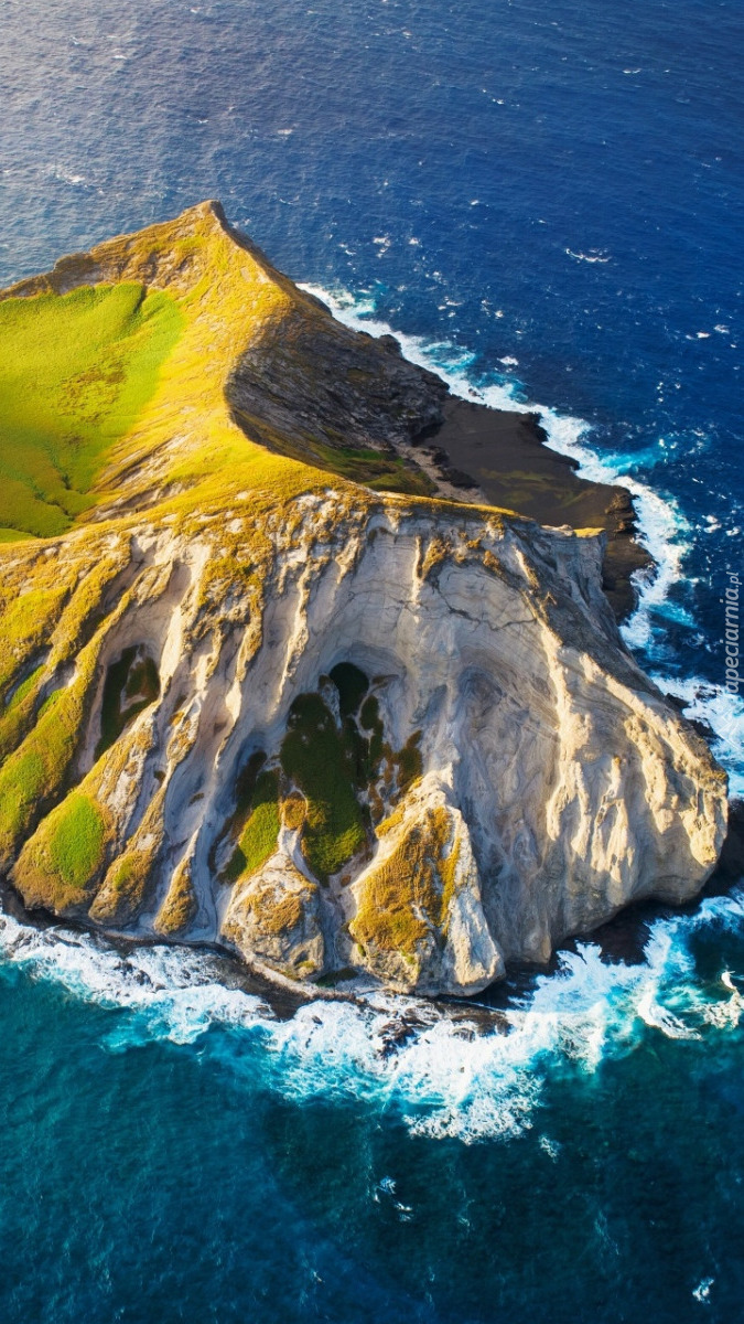 Edytor tapety: Zielona wyspa na skałach