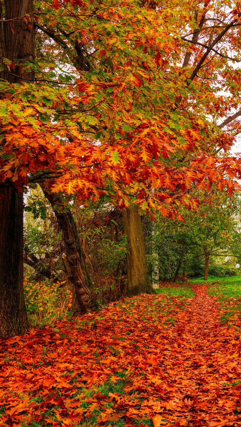 Edytor tapety: Opadłe liście dębu pod drzewem