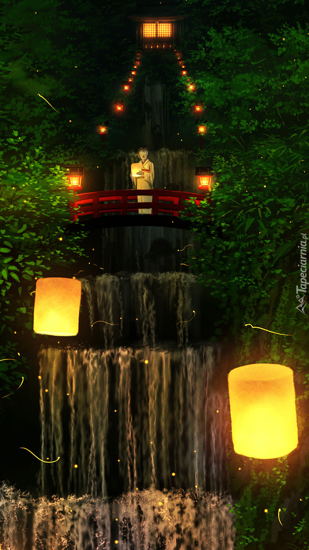 Edytor tapety: Latarnie przy wodospadzie