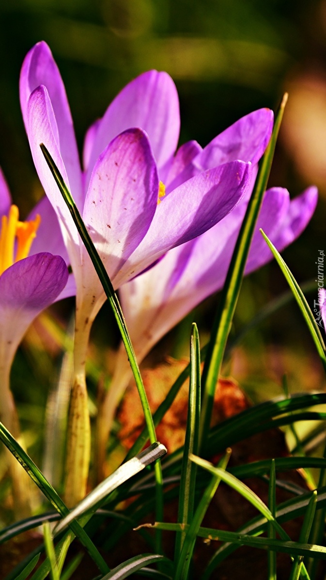 Edytor tapety: Fioletowe krokusy w trawie
