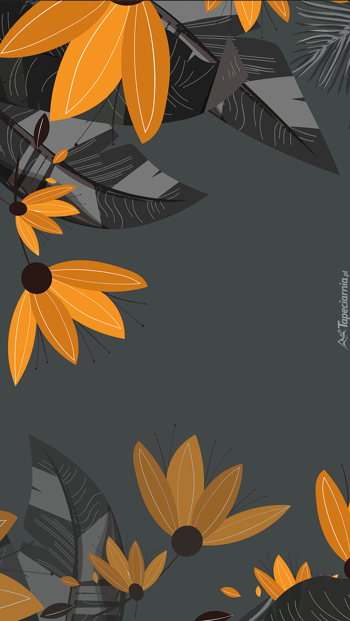 Edytor tapety: Pomarańczowe kwiaty i liście w grafice