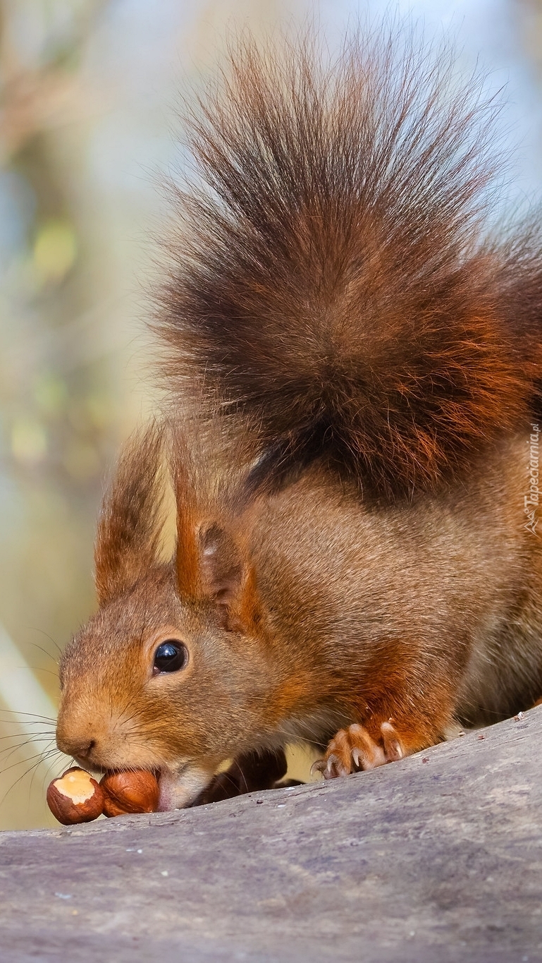 Edytor tapety: Ruda wiewiórka z orzeszkami