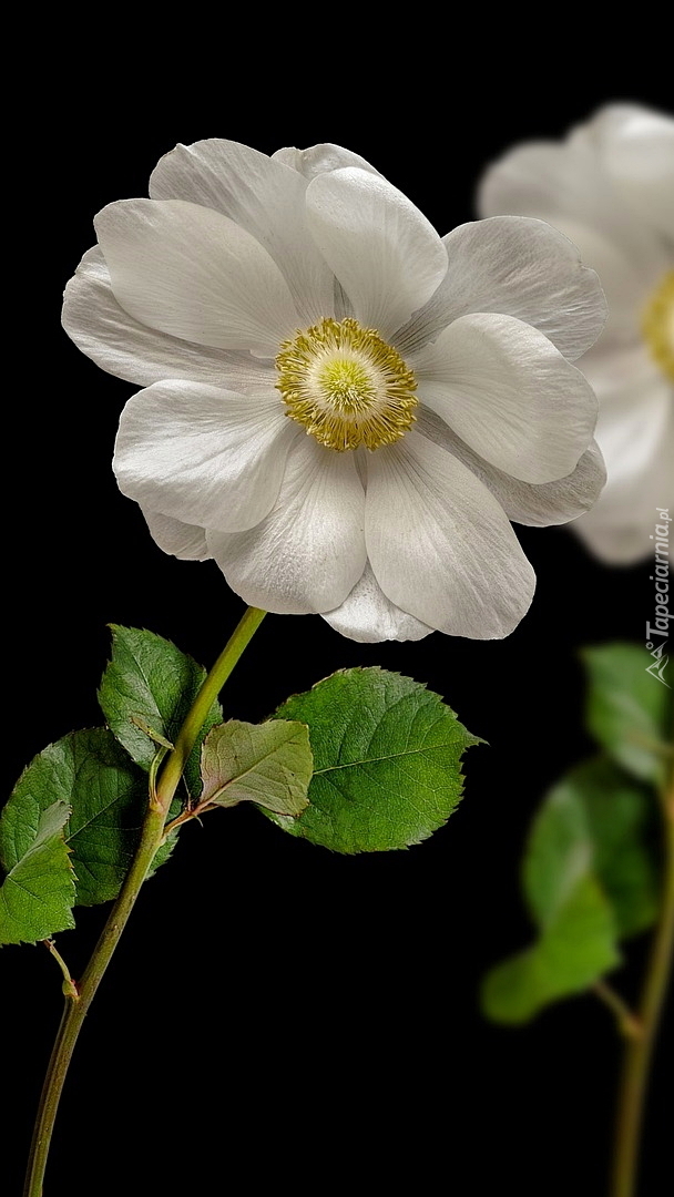 Edytor tapety: Biały kwiat na czarnym tle