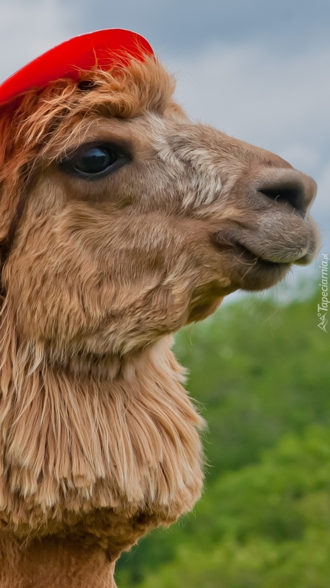 Edytor tapety: Alpaka w czerwonym kapeluszu