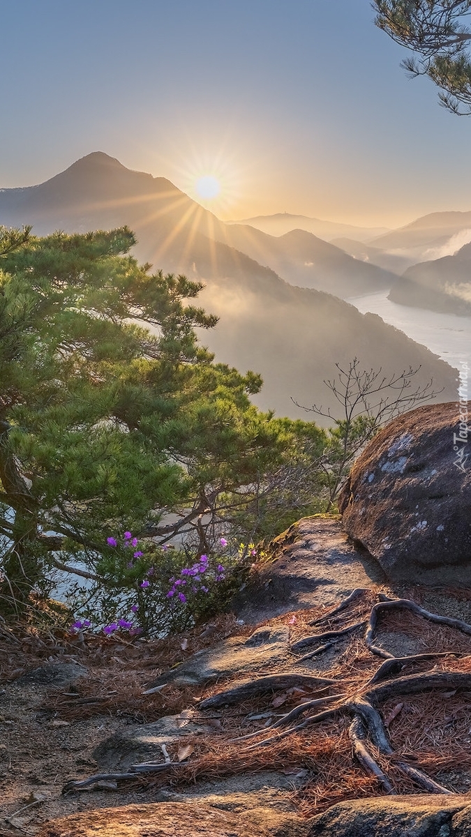Edytor tapety: Widok na góry w promieniach słońca
