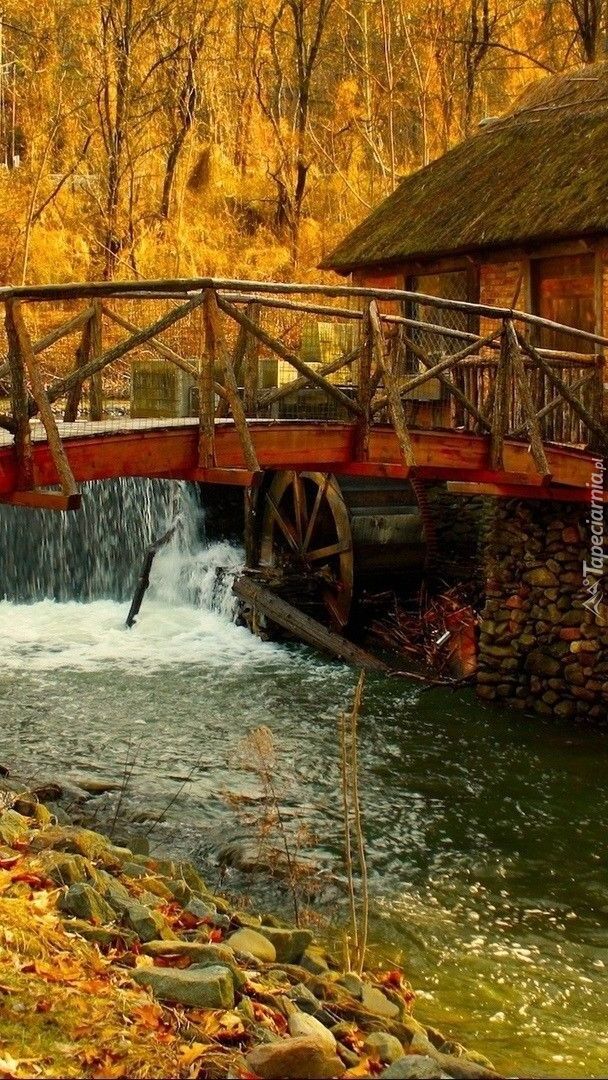 Edytor tapety: Młyn z mostkiem nad rzeką