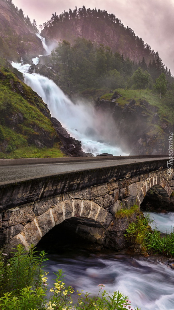 Edytor tapety: Most na rzece przy wodospadzie Latefossen