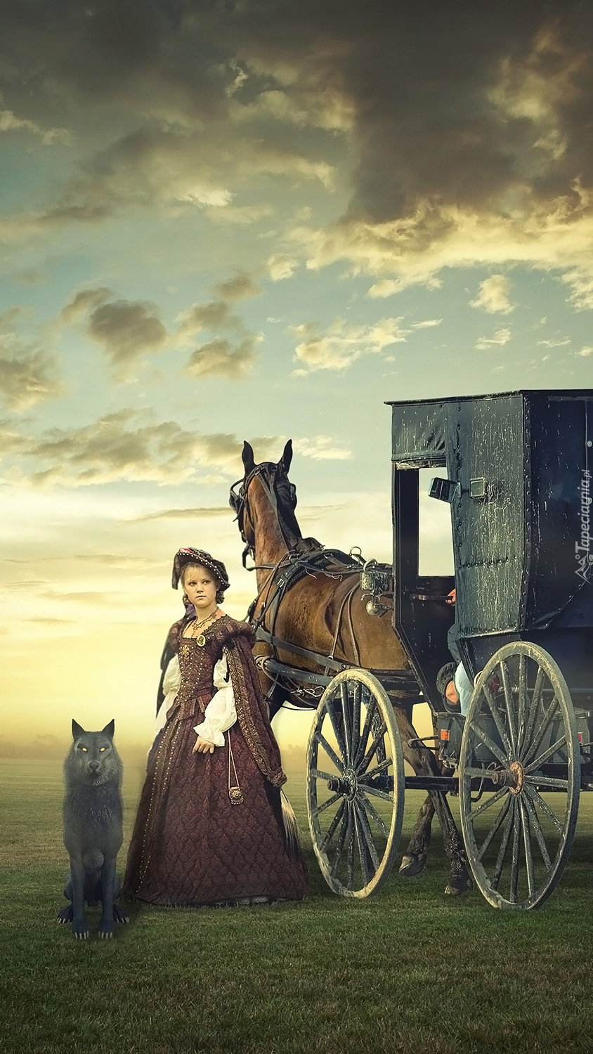 Edytor tapety: Dziewczynka z psem obok dorożki