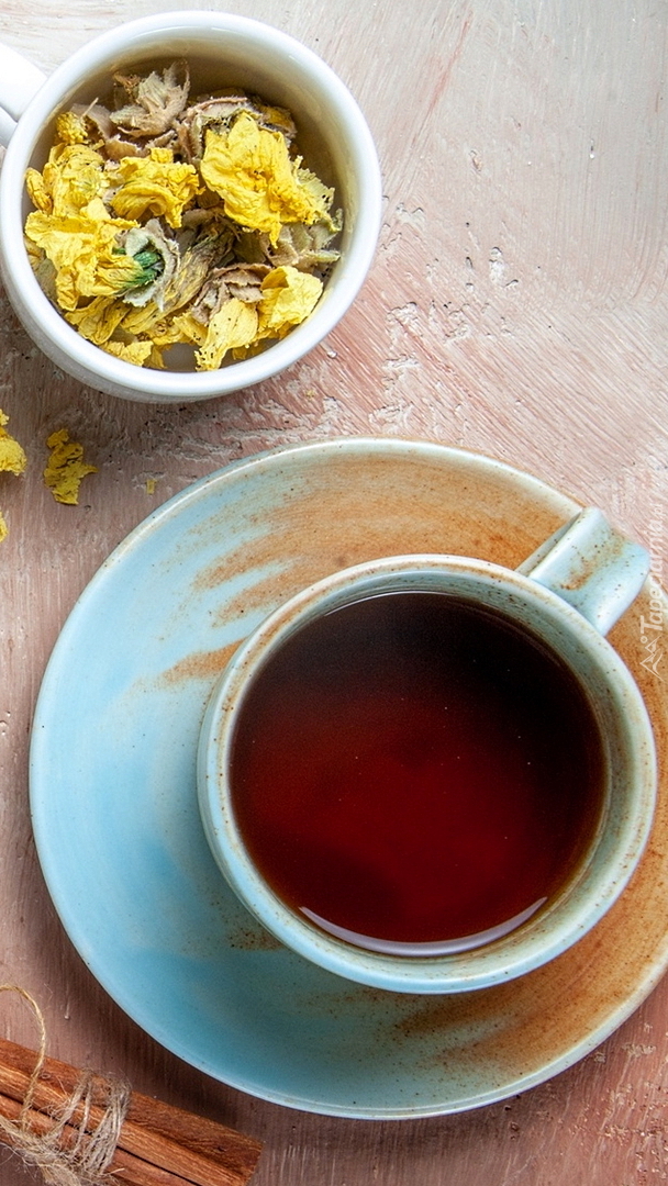 Edytor tapety: Suche kwiaty obok filiżanki z herbatą