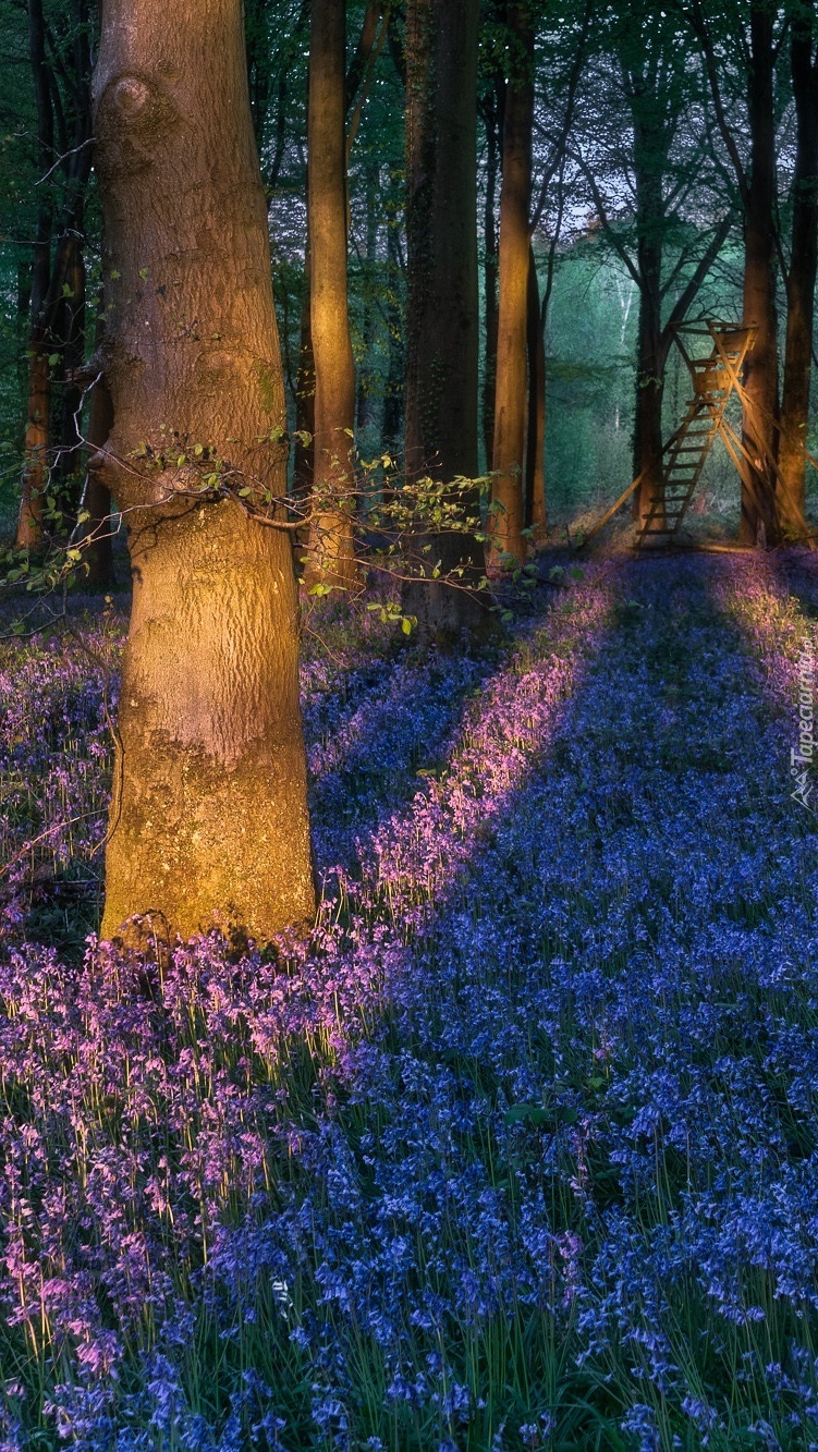 Edytor tapety: Fioletowe kwiaty pośród drzew