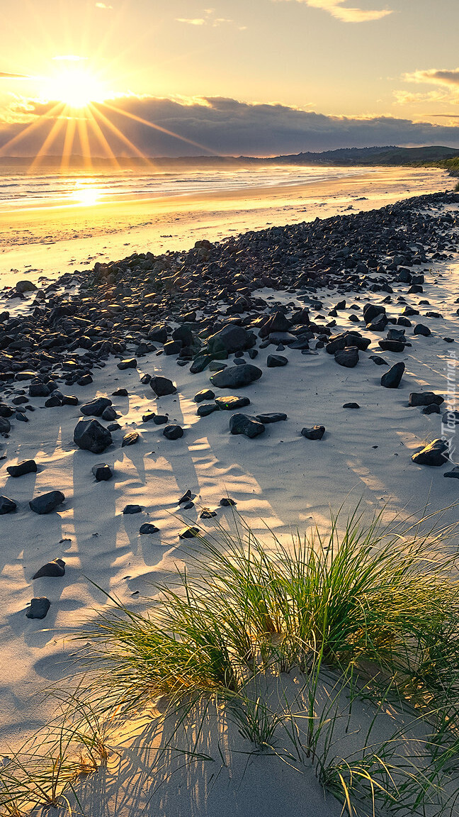 Edytor tapety: Kamienie i trawy na morskiej plaży