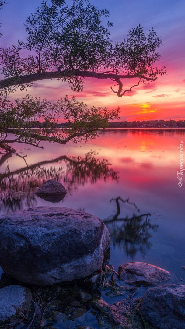 Edytor tapety: Pochylone drzewa nad jeziorem