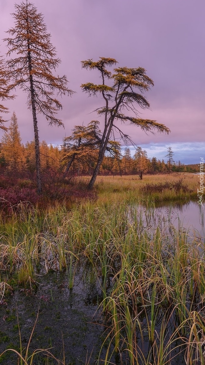 Edytor tapety: Trawy i drzewa nad jeziorem