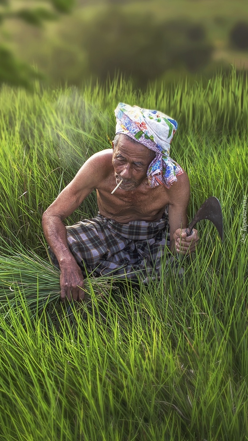 Edytor tapety: Mężczyzna ścinający trawę
