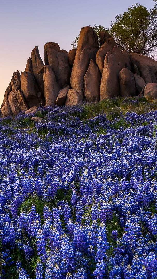 Edytor tapety: Łubin na łące pod skałami
