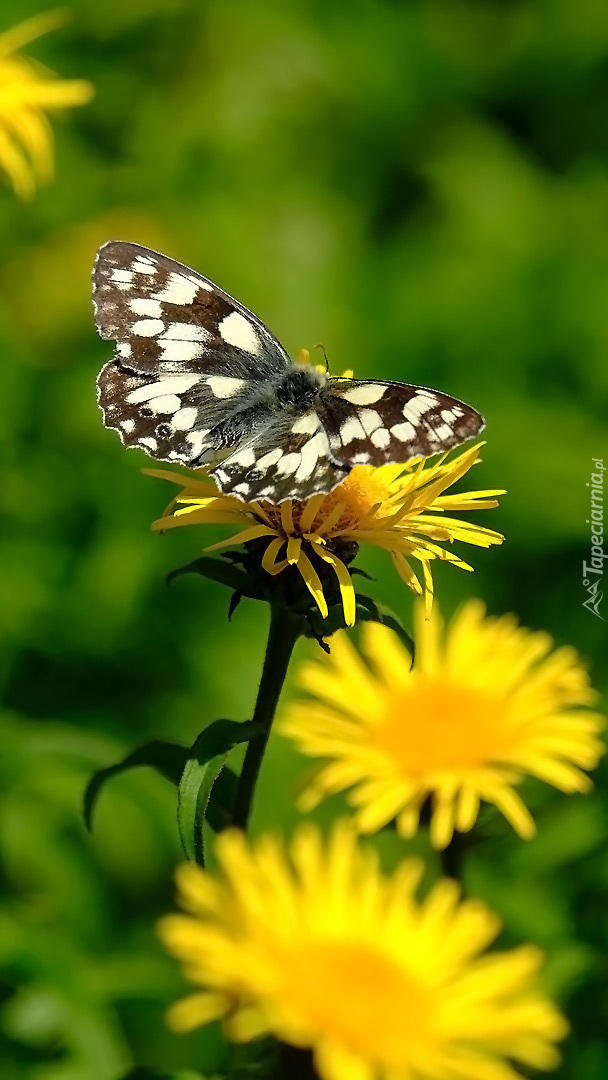 Edytor tapety: Polowiec szachownica na żółtym kwiatku