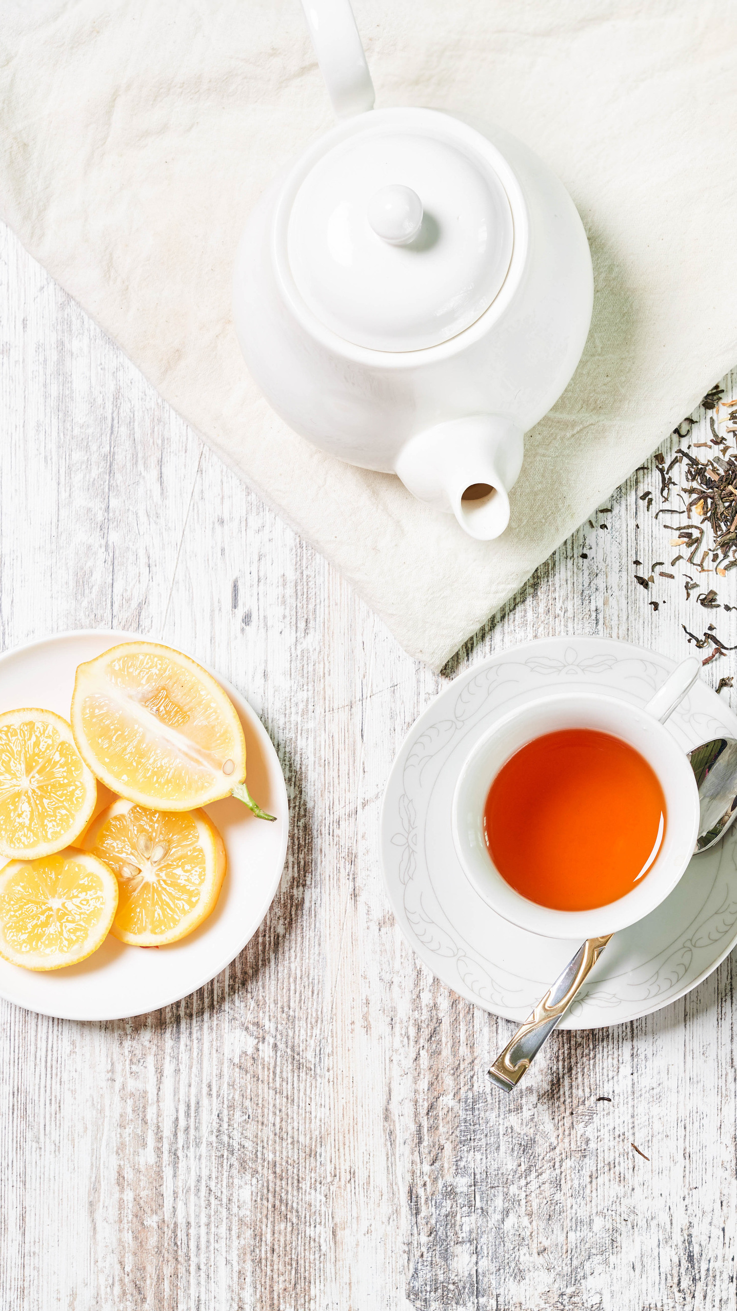Edytor tapety: Herbata obok cytryn i czajniczka