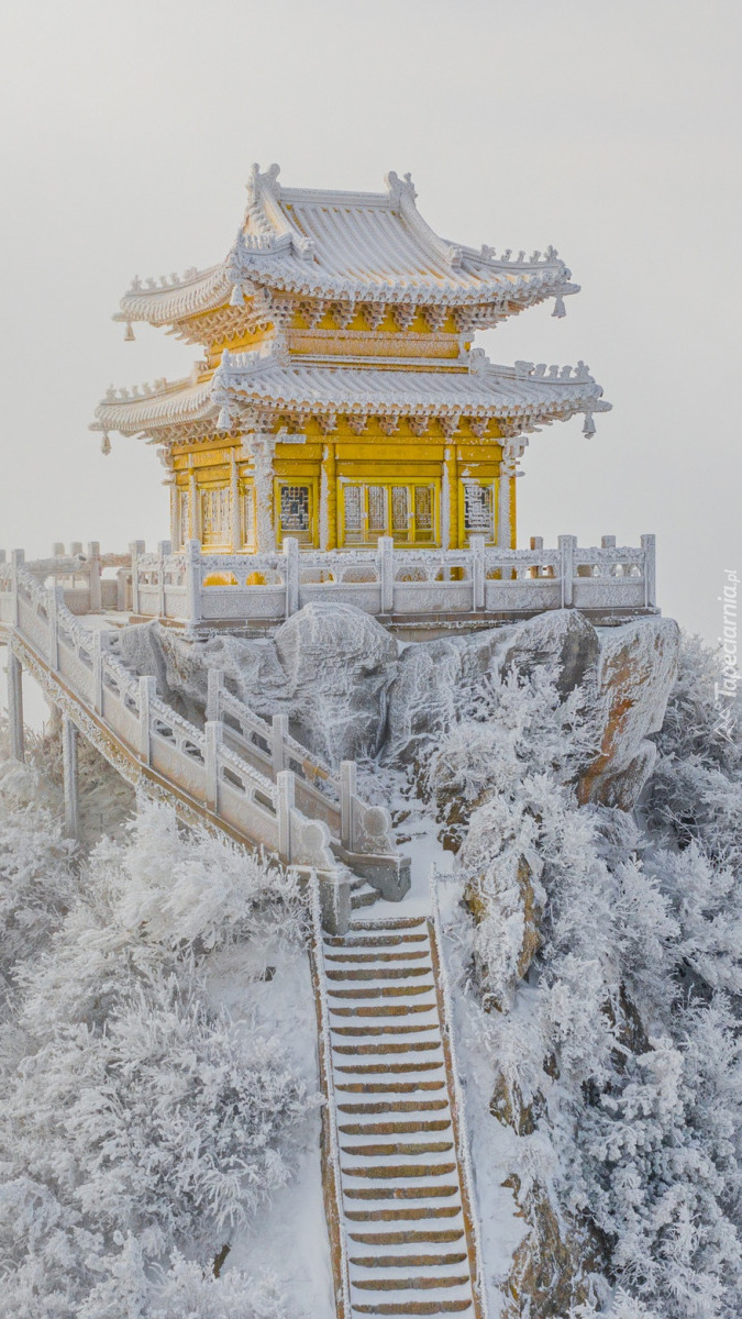 Edytor tapety: Świątynia na zaśnieżonej skale