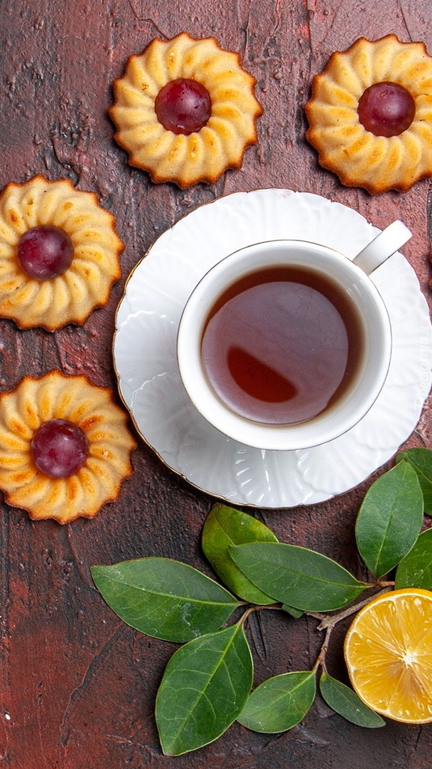 Edytor tapety: Filiżanka z herbatą i ciasteczka
