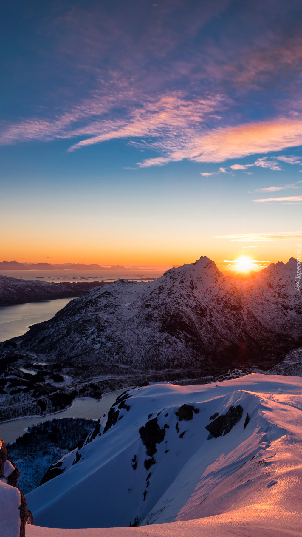 Edytor tapety: Wschodzące słońce nad górami
