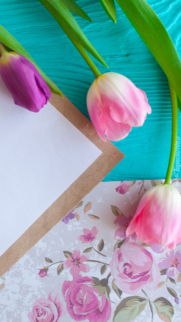 Edytor tapety: Kolorowy papier obok tulipanów