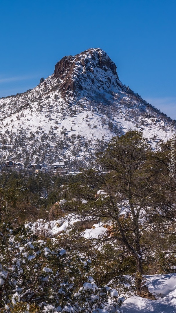 Edytor tapety: Drzewa pod ośnieżoną górą