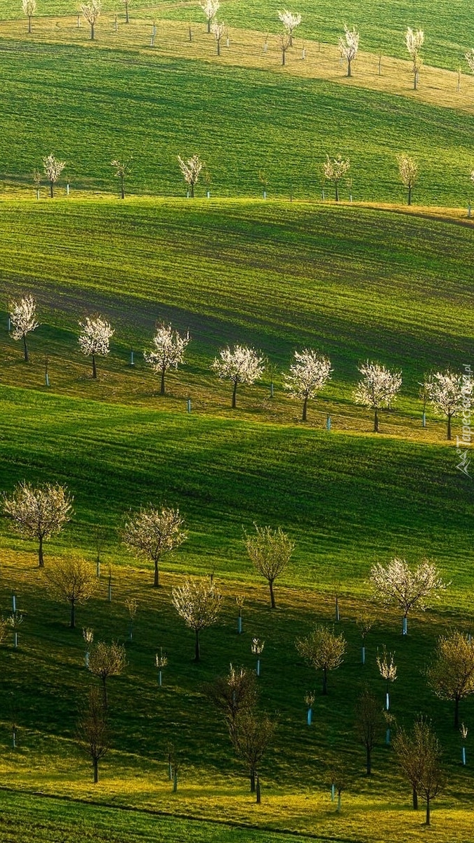 Edytor tapety: Drzewka owocowe na łąkach