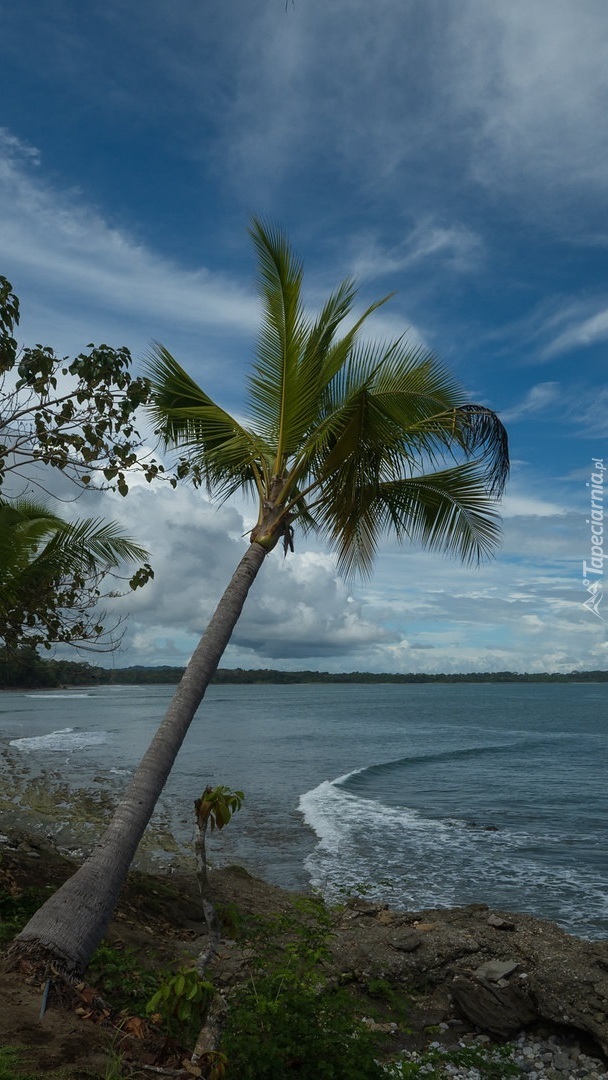 Edytor tapety: Pochylona palma nad morzem
