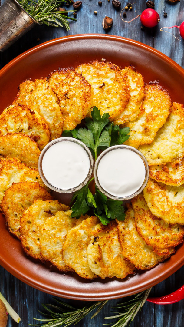Edytor tapety: Placki ziemniaczane i śmietana na talerzu