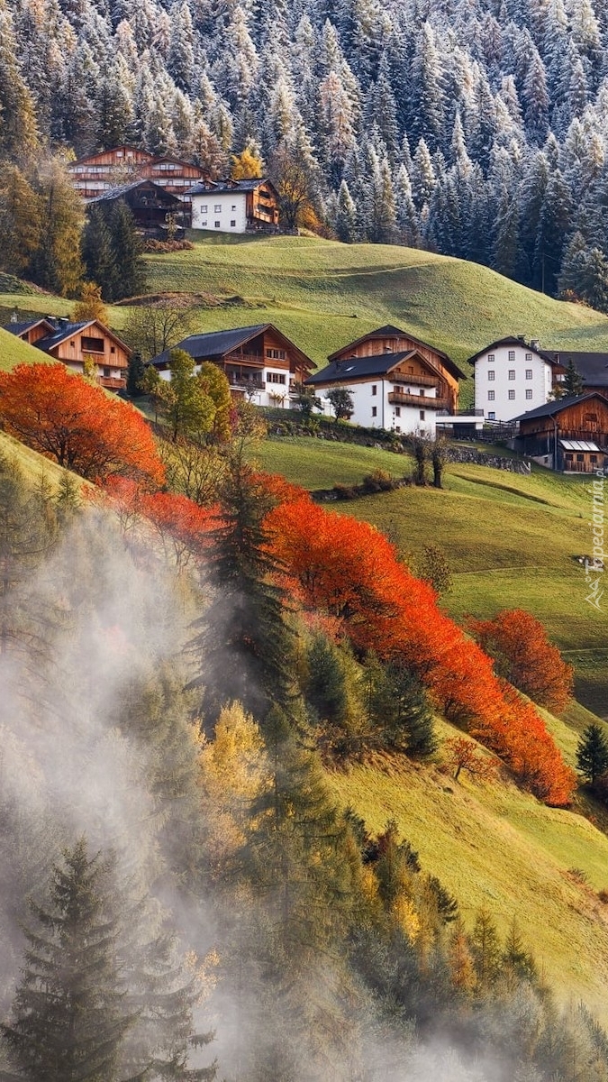 Edytor tapety: Domy i drzewa na wzgórzach