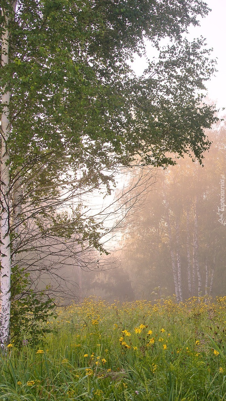 Edytor tapety: Brzozy na łące