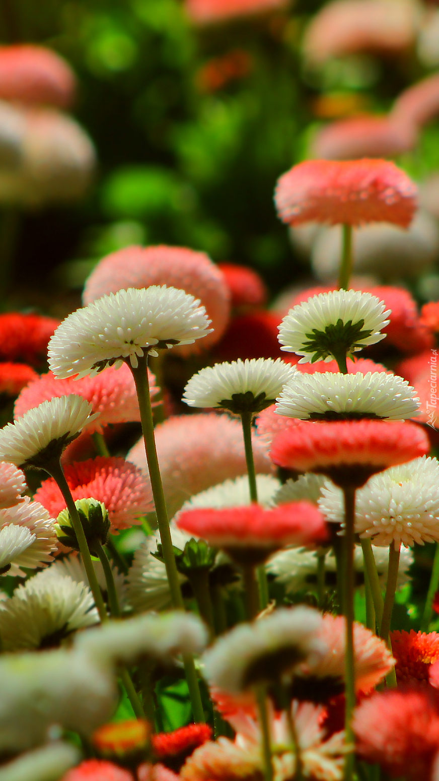 Edytor tapety: Kwitnące kolorowe stokrotki