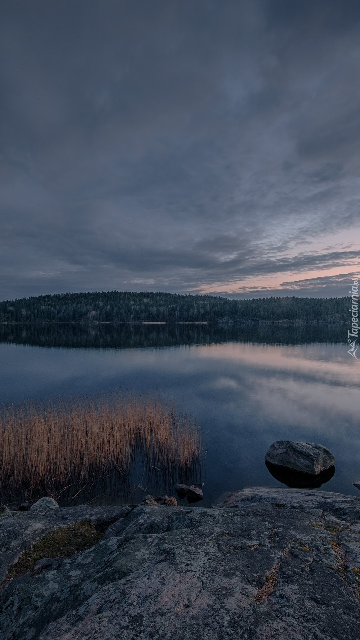 Edytor tapety: Ciemne chmury nad jeziorem