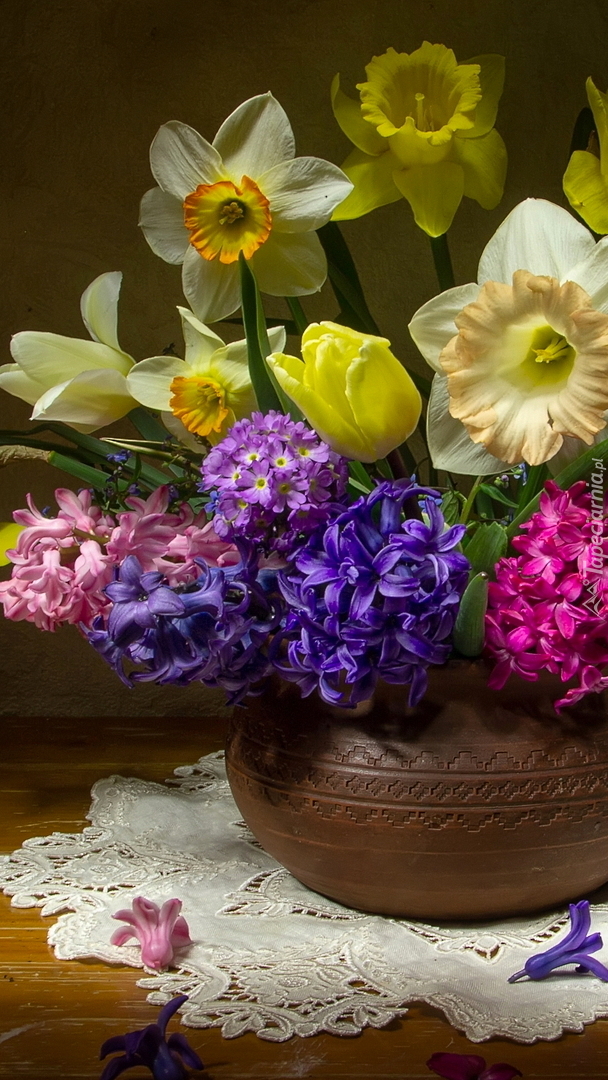 Edytor tapety: Wiosenne kwiaty w wazonie