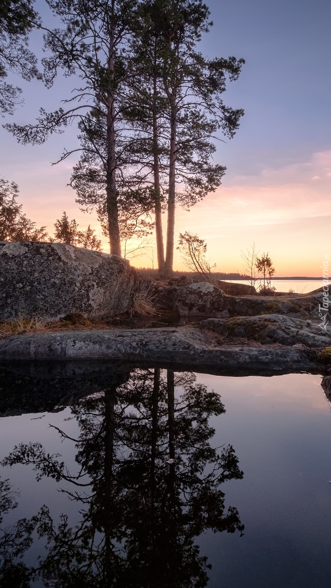 Edytor tapety: Odbicie drzew w jeziorze
