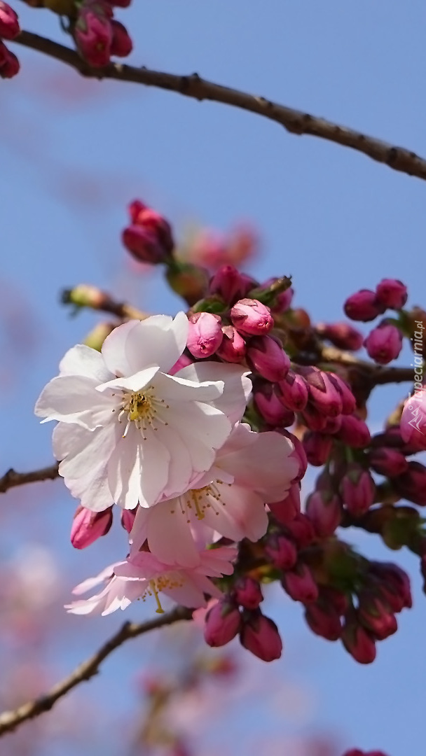 Edytor tapety: Różowe kwiaty i pąki wiśni japońskiej