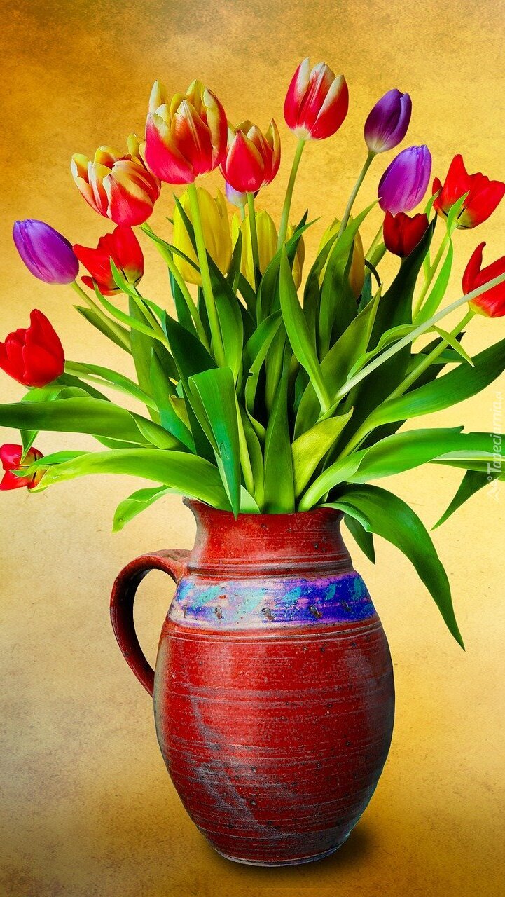 Edytor tapety: Kolorowe tulipany w dzbanku