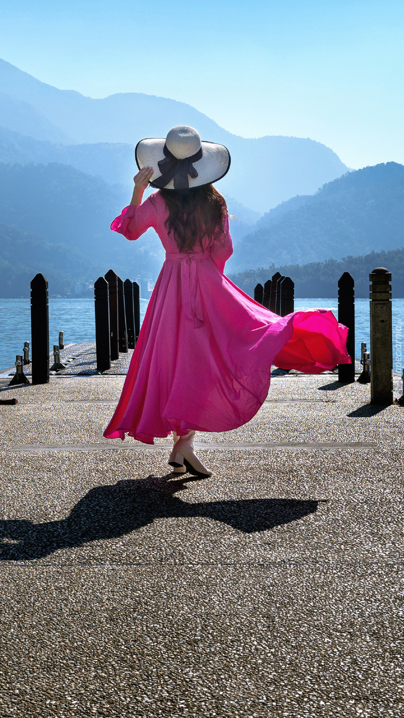 Edytor tapety: Kobieta w różowej sukience i kapeluszu